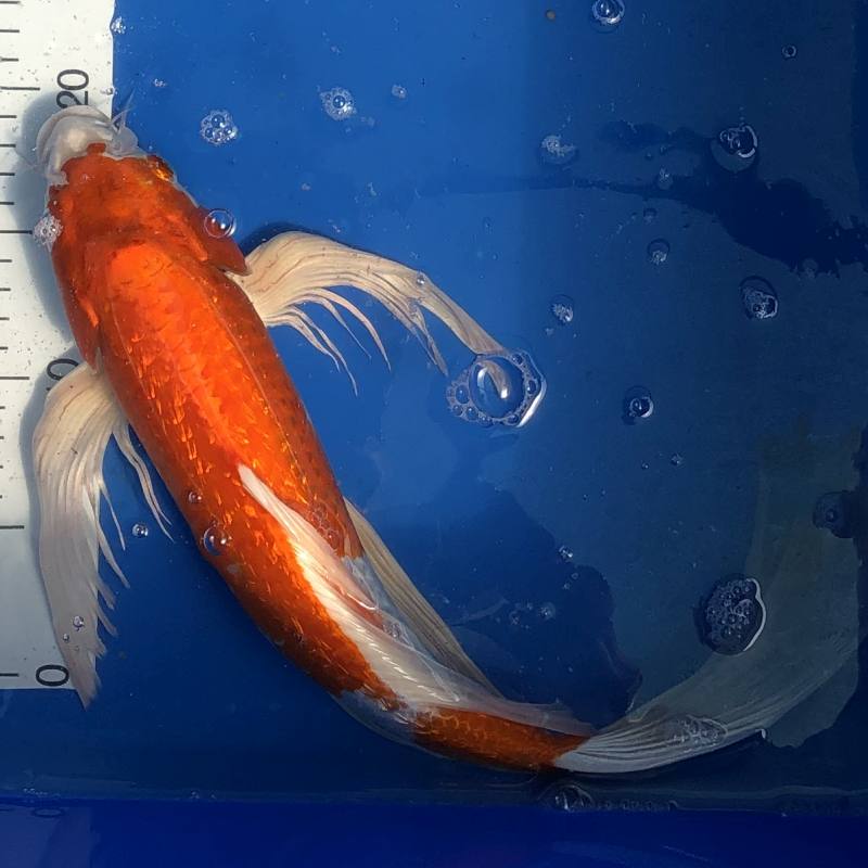 Koi Ginrin Orenji Hariwake Butterfly: durchdringende, intensive Farbe, sehr schönes Flossenbild.